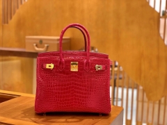 Hermès(爱马仕)Birkin 30cm 极致粉 金扣 一级野生湾鳄 倒“V”原版蜜蜡线 顶级手缝版本