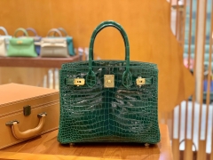 Hermès(爱马仕)Birkin 30cm 祖母绿 金扣 一级野生湾鳄 倒“V”原版蜜蜡线 顶级手缝版本