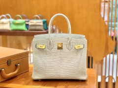 Hermès(爱马仕)新增现货 Birkin 30cm 珍珠灰 金扣 一级尼罗鳄皮 原版蜜蜡线 顶级手缝版本