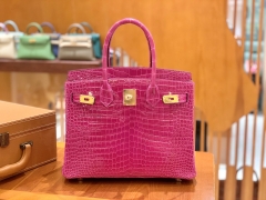 Hermès(爱马仕)Birkin 30cm 桃红色 金扣 一级野生湾鳄 倒“V”原版蜜蜡线 顶级手缝版本