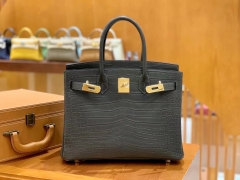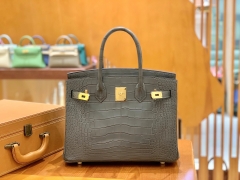 Hermès(爱马仕)Birkin 30cm 石墨灰 金扣 一级野生湾鳄 倒“V”原版蜜蜡线 顶级手缝版本