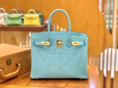 Hermès(爱马仕)新增现货 Birkin 30cm 马卡龙蓝 金扣 一级尼罗鳄皮 原版蜜蜡线 顶级手缝版本